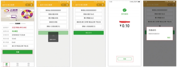 藍牙水表的問世,實現(xiàn)了“繳費不出門”的智慧供水服務。用戶只需使用微信小程序,即可坐享水費繳納、用水賬單查詢、余額查詢,電量不足提醒等人性化的”智能水服務”,繳費無需東奔西跑,無需排長隊!